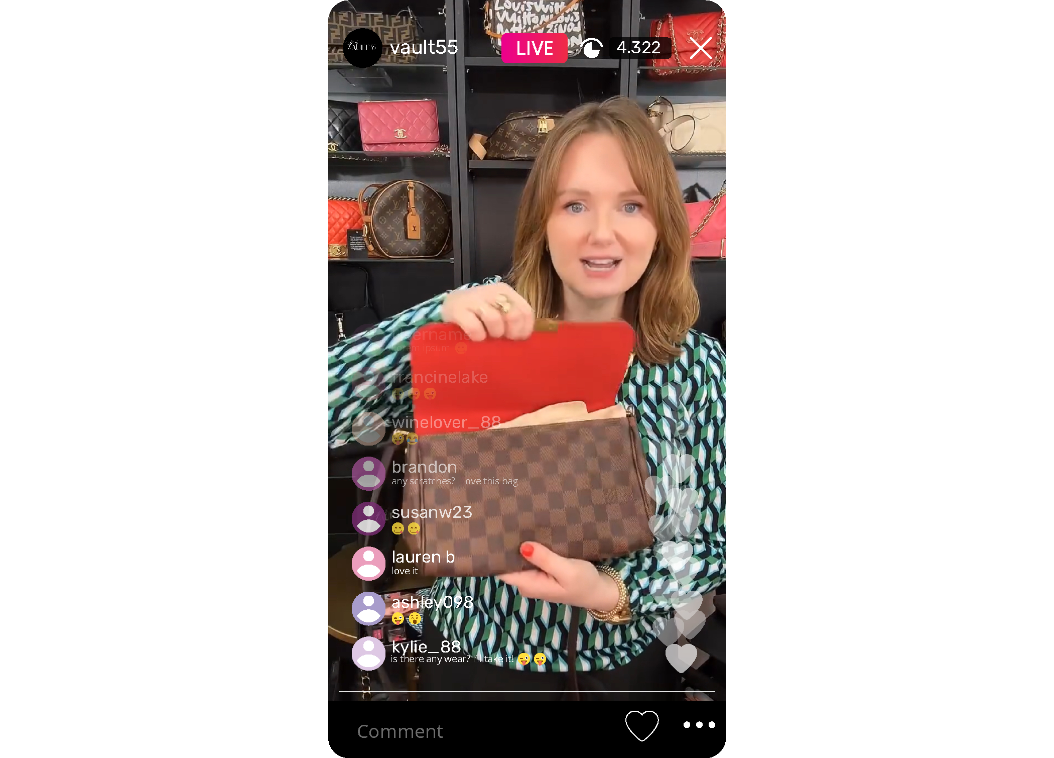 Live shopping is perfect for seeing more details of the bags, asking questions, and getting some great "Live Only" deals.